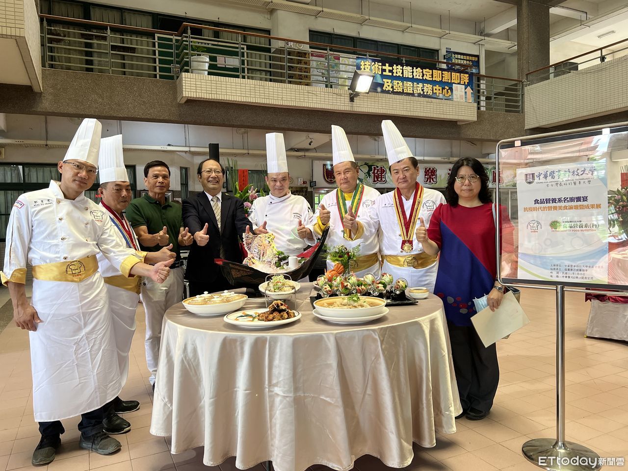 後疫情時代防疫就從飲食營養強化免疫力做起!由中華醫事科技大學食品營養系和福爾摩沙廚藝協會攜手舉辦的「2022年抗疫時代營養美食饗宴暨成果展」15日登場,台南在地6位料理大師汪義勇、蕭宗隆、林志軒、黃茂裕、郭文明、郭育宏同台飆廚藝,展示12道融合營養健康防疫美食,令與會各界及師生嘆為觀止。