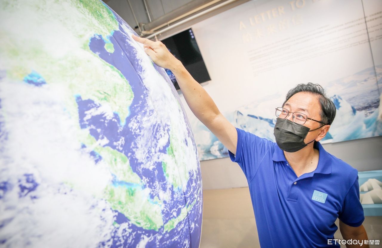 ▲桃園市長參選人張善政仔細觀看地球儀上格陵蘭位置,並對解凍遠征隊打氣加油。(圖/記者沈繼昌翻攝)