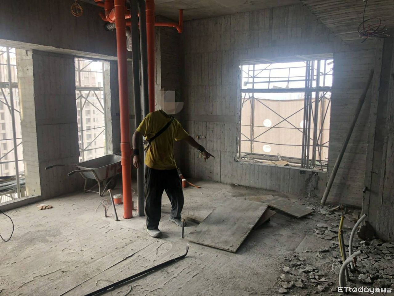 ▲目擊工人指出案發位置。(圖/記者許宥孺翻攝)