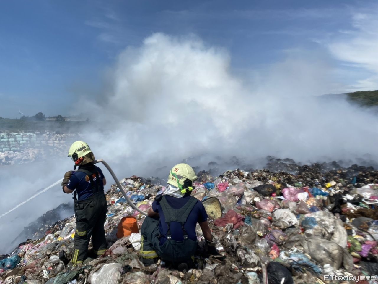 新豐掩埋場約在上午10時許傳出起火,消防局派出7輛救災車到場,現場濃煙陣陣,燃燒範圍不斷擴大,初估已有超過200平方公尺受波及。