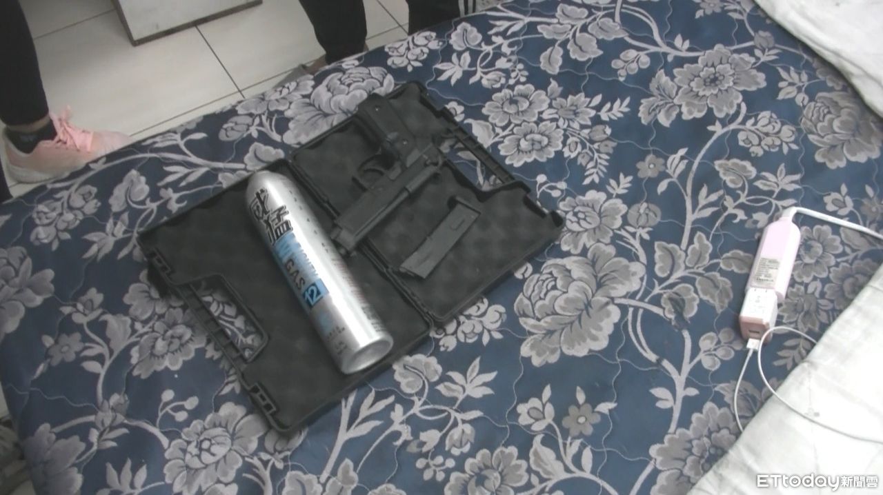 ▲警方在其中1位少年租屋處起出作案用空氣槍1把。(圖/記者楊漢聲翻攝)
