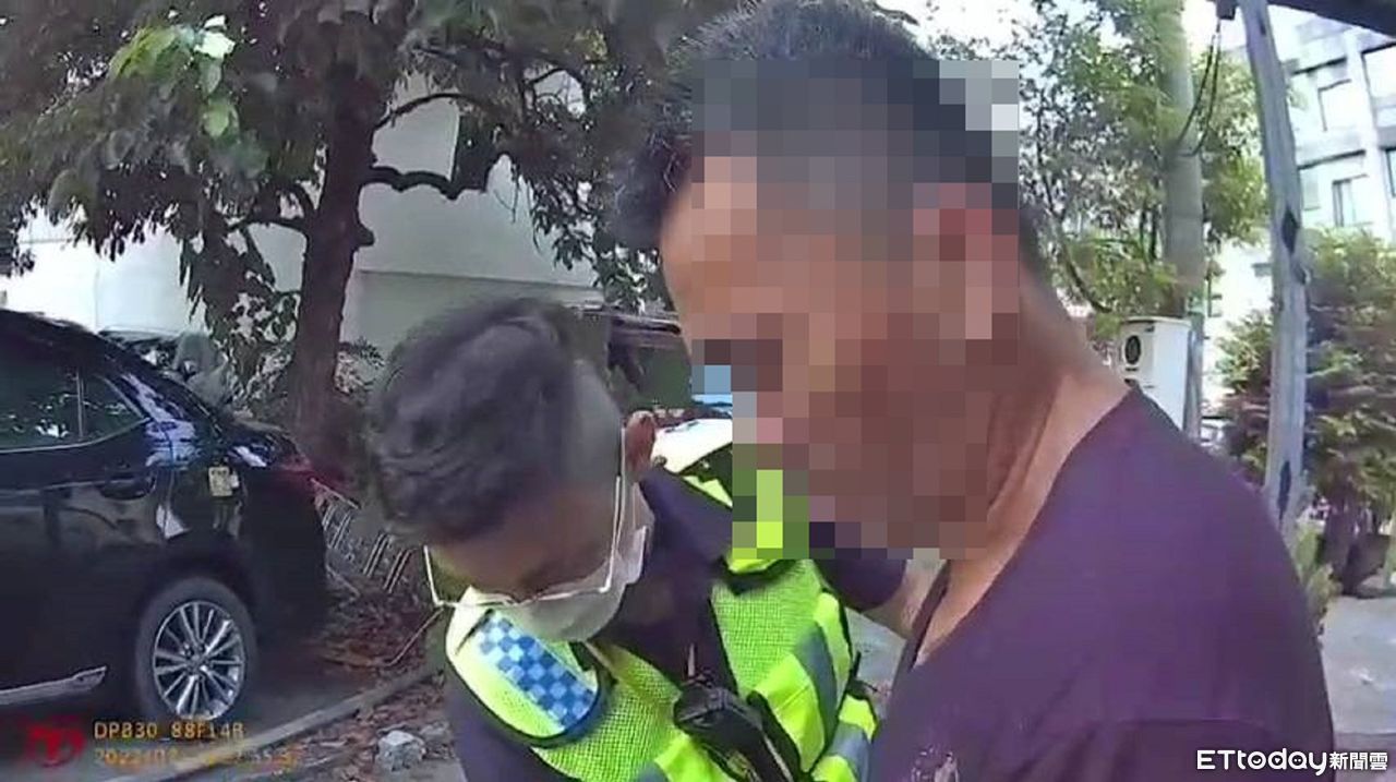 男子坐在地上氣喘如牛,滿臉驚慌望向身旁的員警,確認不是仇家這才鬆了一口氣,警方將他上銬帶回。
