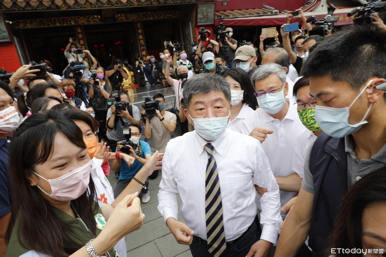 陳時中上午在台北霞海城隍廟召開「市長競選團隊公布記者會」,與會者包括民進黨立委林楚茵、莊瑞雄、何志偉、高嘉瑜、管碧玲、吳玉琴、洪申翰、無黨籍立委林昶佐,以及多名民進黨籍台北市議員。