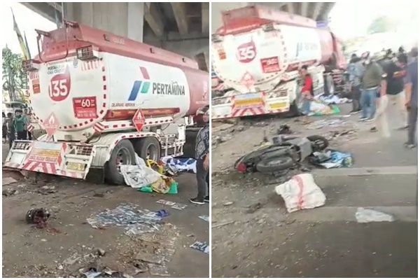 印尼雅加達(Jakarta)18日下午發生恐怖車禍,一群機車騎士在等紅燈時,竟遭印尼國家石油公司(Pertamina)的油罐車猛烈衝撞,至少11人慘死輪下。根據現場影片,被撞爛的機車殘骸沿路四散,多名受害者被壓在油罐車底下,救援人員急忙尋找倖存者,畫面怵目驚心。