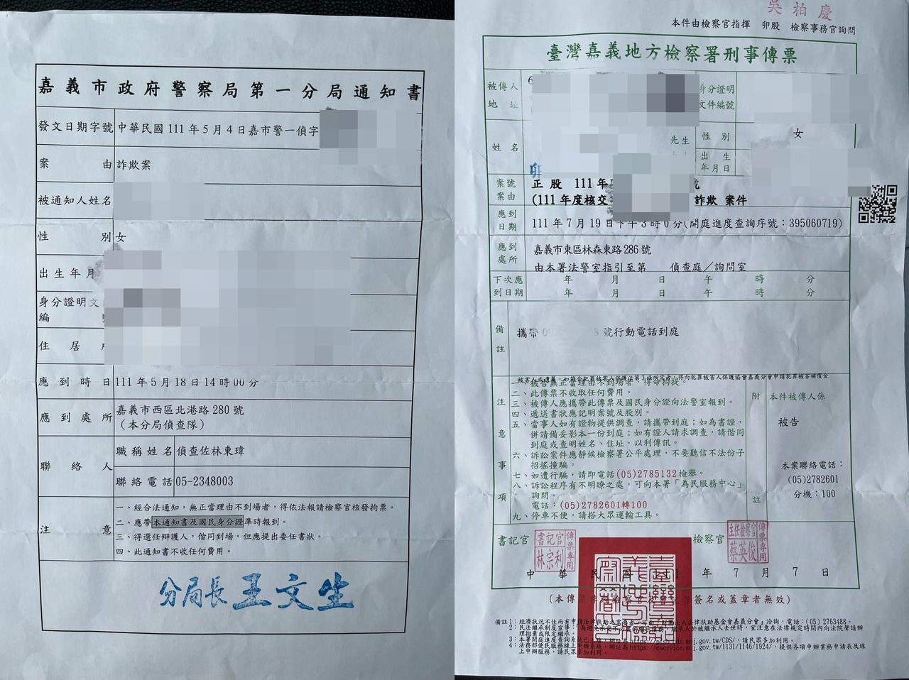女網友在「爆怨公社」發文提到,某天她收到警局信件,打開竟是一起詐欺案,但因通知單沒蓋官方印章,機警的她為求慎重,查完警局電話便打去確認,「沒想到代誌大條了,詐騙案通知是真的,我變詐欺犯了。」
