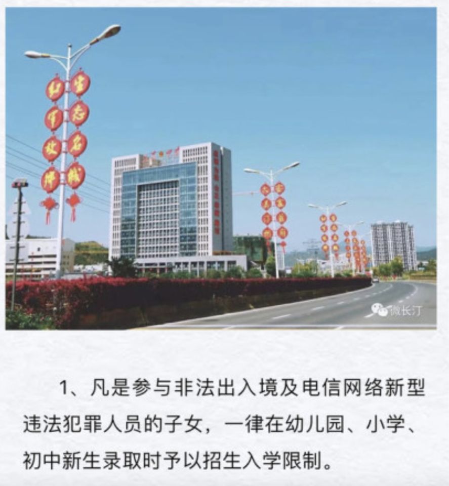 新羅區針對電信詐騙,曾提出了「十個一律」綜合措施。新羅區打擊治理電信網絡新型違法犯罪工作聯席會議辦公室工作人員透露,區政府2019年出台、2020年開始執行「凡是參與電信網絡新型違法犯罪嫌疑人的子女,一律在城區學校就讀時予以招生入學限制」的規定,今年已經是第三年執行,政策的目的是為了震懾涉詐類人員。而受限的是公辦優質學校,涉及幼兒園升國小、國小升國中這兩個階段,至於普通公辦學校則不受限。