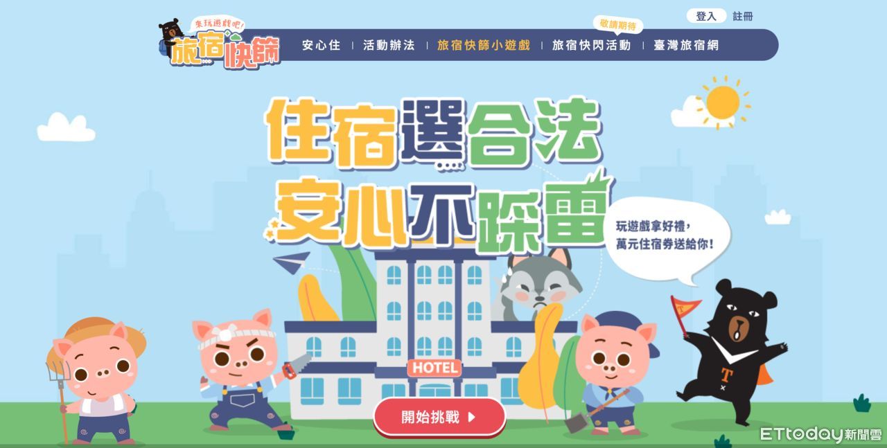 ▲▼「旅宿快篩」小遊戲相當簡單,只要一分鐘就可遊玩完畢,還可點選連結查詢合法旅宿名單。(圖/翻攝自旅宿快篩網頁)