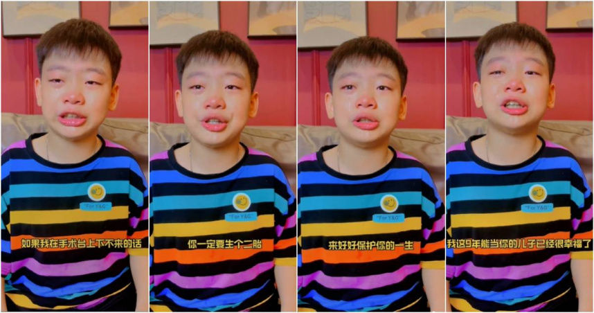 樂樂媽媽表示,孩子自1歲確診重度腦癱、語言障礙、早產兒視網膜病變(Retinopathy of Prematurity,簡稱ROP),決定讓他下周入院動手術,孩子得知自己要動手術後,安慰媽媽不要難過,交代媽媽再生一個孩子,代替他保護媽媽一生,當了她9年的孩子他已經很知足了,讓媽媽忍不住瞬間淚流滿面。