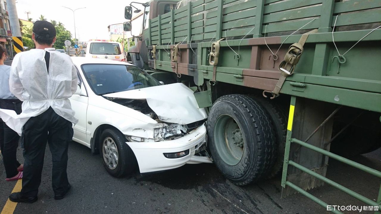▲軍卡與轎車發生擦撞。(圖/記者許宥孺翻攝)