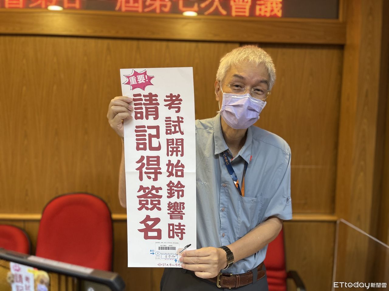 ▲周兆民表示,今年分科測驗因加強宣傳,包括在黑板正中央張貼提醒海報,未簽名考生人數大減。(圖/記者許敏溶攝)