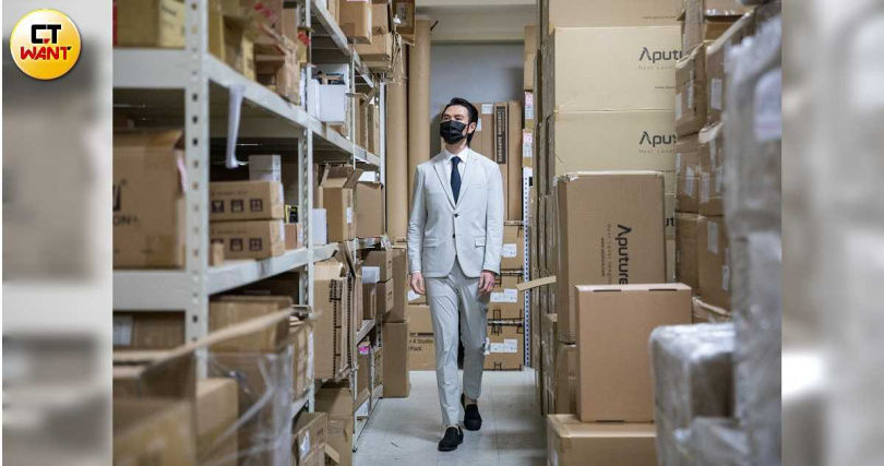 正成集團至今已經有200多個影視聽器材的品牌代理權,囊括了電視、電影、廣播、音樂專業器材,小至微型影音創作的入門產品。丘紘豪領著CTWANT記者走進位在三重的正成倉庫,隨處可見售價近百萬元的腳架、燈具等器材,還有維修用的鏡片、耗材等,商品市值約當2億元。