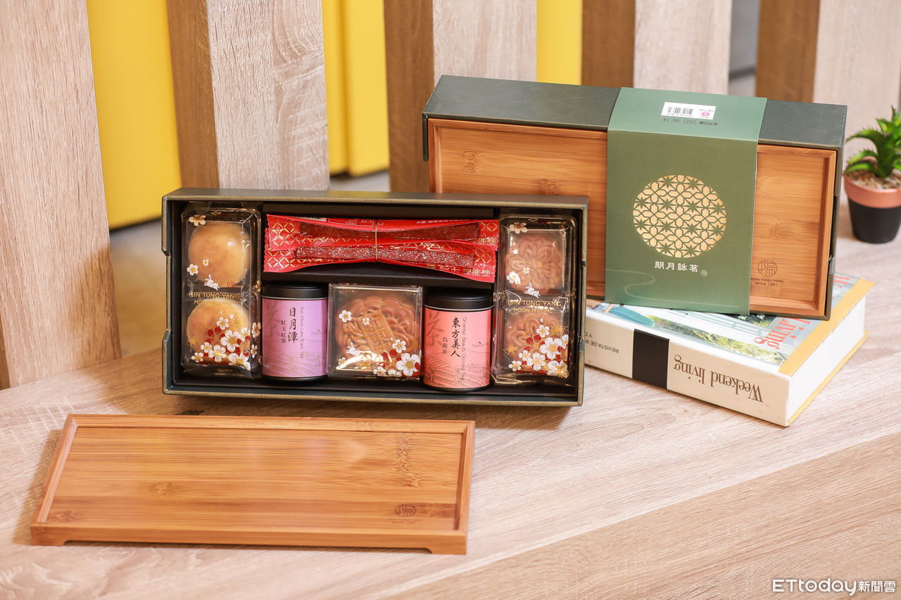 ▲新東陽推出「朗月詠茗禮盒」集結創意和美味於一身。(圖/記者周宸亘攝,下同)
