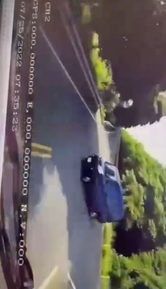 砂石車的行車紀錄器上能夠看見,行經路口時,廂型車正要左轉,然而砂石車駕駛見狀猛按喇叭後煞車仍閃避不及,直接猛力撞上廂型車,砂石車滑行一段距離後開上護欄才停下,廂型車也被撞飛,此刻前方剛好有一輛摩托車經過,見狀趕緊往對向車道騎,才免於捲入意外中。