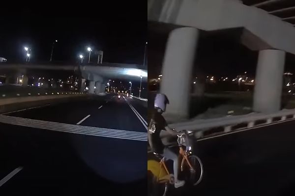 YouTube頻道「WoWtchout - 地圖型行車影像分享平台」分享一段影片,內容為行車紀錄器的畫面,當時騎士行經二重疏洪道,沒想到左側突然冒出一名頭戴安全帽、騎著YouBike的正妹,瞬間超了車。