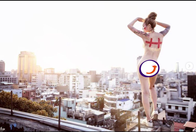 ▲JKF女郎「琦琦」因裸身貼雙十入鏡引發話題。(圖/翻攝IG/babara520,下同)