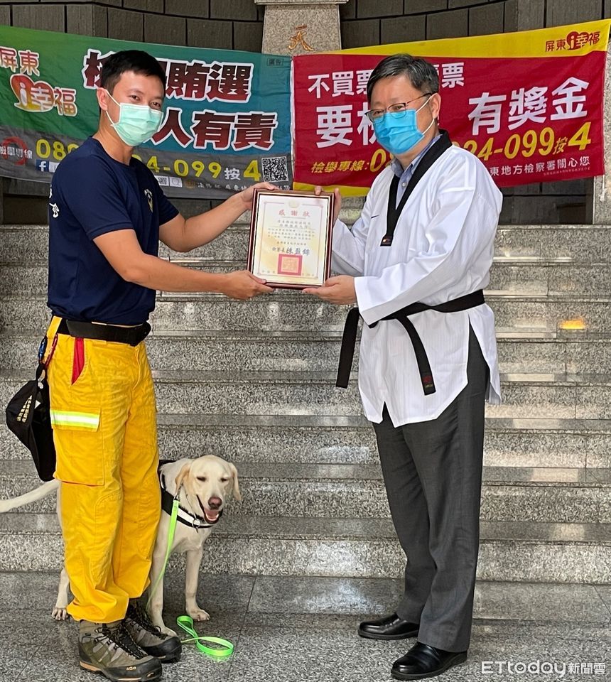 記者會先由屏東縣政府消防局特種搜救大隊隊員章志強、蔡志勇以及林家右帶領搜救犬Mona帥氣登場,希望以搜救犬的忠誠精神作為此次反賄選象徵,顯現屏檢查賄行動也如同搜救犬出任務一樣不懼艱難、使命必達。