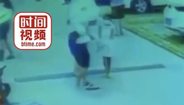 廣西一名身著防護服的「大白」志願者26日與排隊民眾口角,隨後從檢測站衝出飛踹該名民眾,嚇壞站在一旁的小女孩。不過,這名大白似乎是起跳過早,不僅沒有直接踢中民眾,反而整個人直接騎上該名民眾,結果被民眾以類似摔角招式的過頂摔摔落,兩人一起重摔在地。