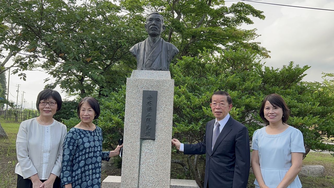 他也說,屏東23日才舉行二峰圳百年紀念活動,總統蔡英文、行政院長蘇貞昌、屏東縣長潘孟安都出席,非常盛大;而「二峰」這個名稱是山本悌二郎的號,可見台日長年以來關係密切,親如一家,這都歸功於百年前先人播下的美好種子;黃土水創作的〈山本悌二郎銅像〉是象徵台日友好的珍貴禮物,這次能順利返鄉,歸功於台日官方與民間的善意與熱情,對此向佐渡市長及市民表達感謝之意。
