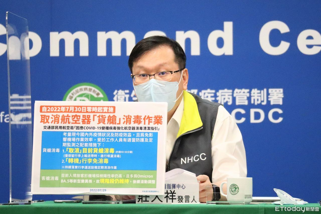 發言人莊人祥表示,7/30起取消目前貨艙消毒 (約需40-50分鐘),僅保留行李上輸帶時,進行噴灑消毒,「轉機」行李也免消毒,不過考量目前入境旅客於機場探檢陽性率仍高,且多為OmicronBA.5等新型變異株,將持續落實客艙消毒,後續滾動調整。