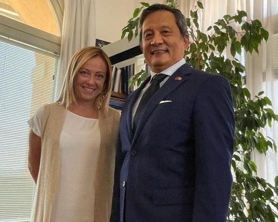 梅洛尼於26日在推特上曬出與台灣駐義大利代表李新穎的合照,她在貼文寫道,「與台灣駐義大利代表李新穎舉行具有成效的工作會議,盼永遠與那些深信自由與民主價值觀的人並肩同行。」