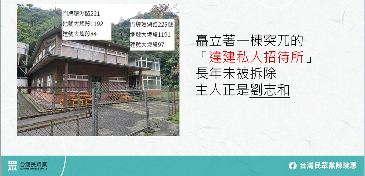 另,陳琬惠7/29立院的記者會及媒體報導所指冬山鄉梅花湖畔違建一事,查冬山鄉大埤段1192地號土地建物,本府自2005年至今(2022)年2月前,並未曾收到任何該違章建築之陳情或檢舉案,直到媒體於今年2月間披露後,縣府即依報導內容,轉請冬山鄉公所進行查報。經查,該建物確有違建情事,面積為2層樓共194平方公尺。後經縣府通知違建人於文到30日內補辦建築執照,違建人逾期未補辦,縣府已於今年4月間,開立違反建築法違建拆除處分書,同時依照「宜蘭縣政府執行違章建築取締辦法」第三條第一項規定,將其列為第三順位拆除對象,後續將依照全縣違章建築優先順序執行拆除作業。