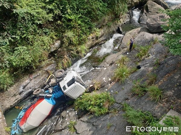35歲廖姓男子1日下午駕駛水泥攪拌車行經台7線37.8公里處,疑似因車速過快加上路況不熟悉自撞橋緣後,再衝破護欄導致整台車翻落橋下約15公尺深的溪床上,整部車後半部幾乎摔扁了,所幸廖男並未受到重創,僅身體多處擦挫傷,有驚無險的自行爬出車外。