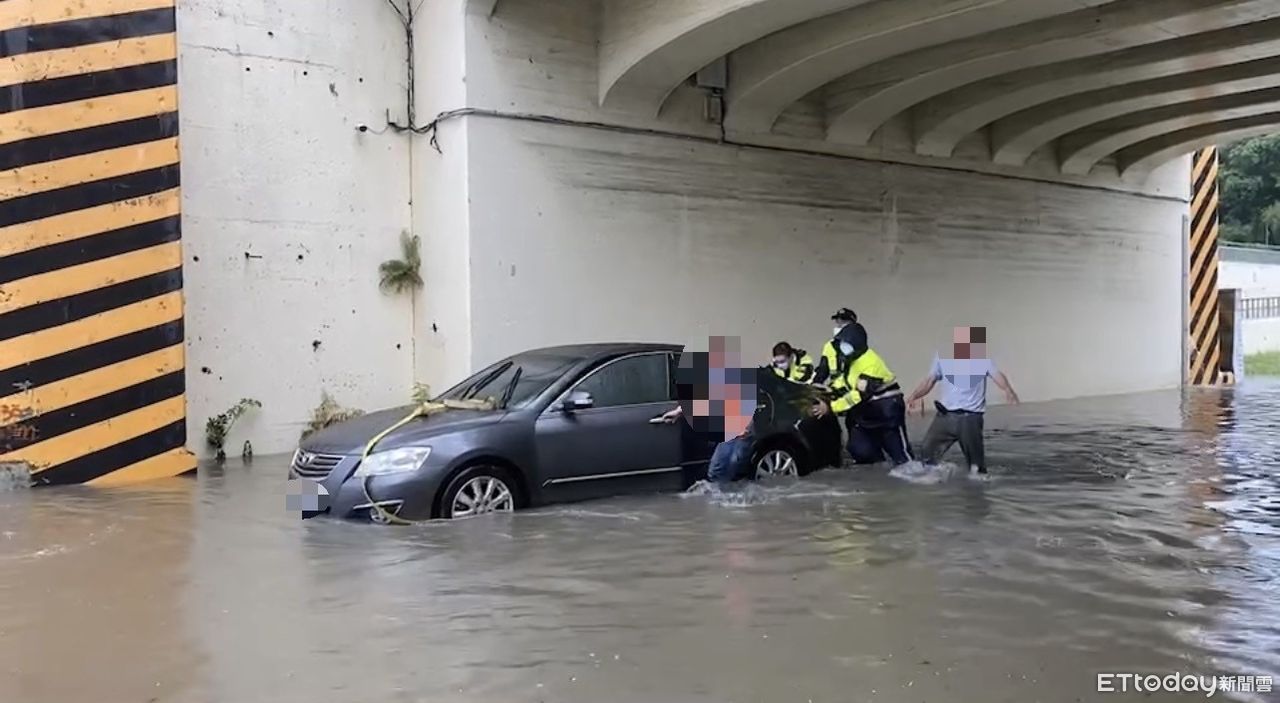 台南市警一分局東寧派出所2日上午9時56分許,接獲110指稱東區小東地下道因急降驟雨導致積水,一部自小客車受困於地下道內,東寧所立即增派員警支援道路封鎖並管制車輛通行,員警協助推車讓小客車脫困,卻意外發現顏姓駕駛竟是多案通緝犯,依法逮捕歸案。