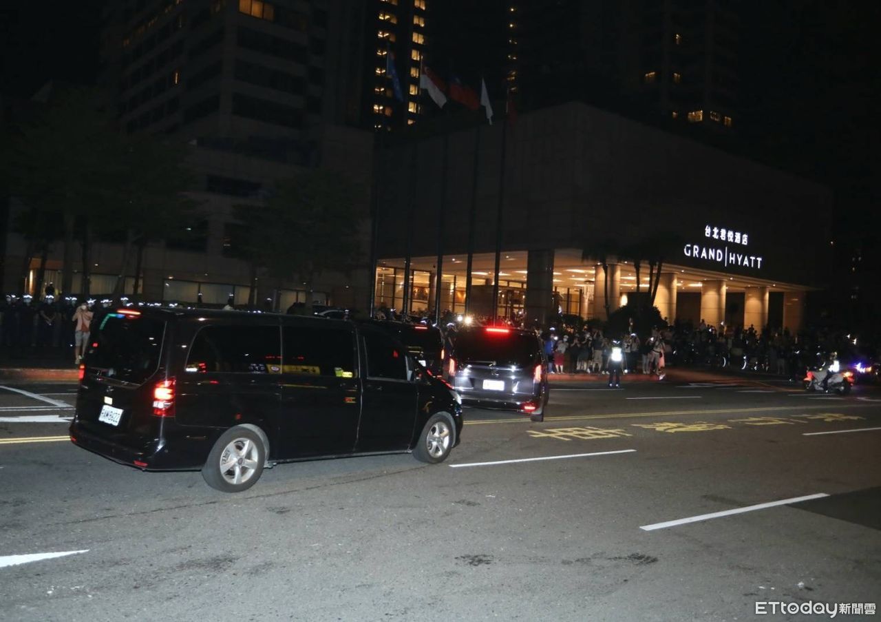 ▲裴洛西車隊抵達君悅飯店。(圖/記者黃克翔攝)
