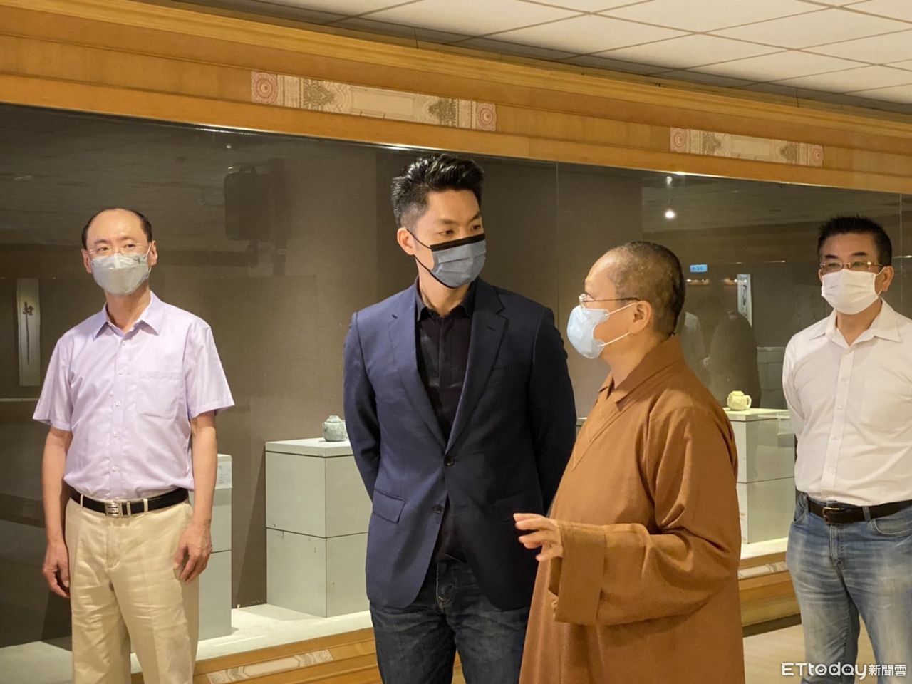 ▲蔣萬安參觀佛光山台北道場美術館-廖天照石雕展。(圖/記者袁茵攝)