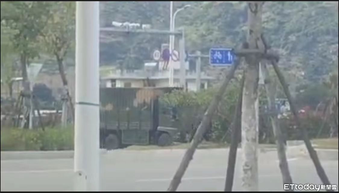 他進一步敘述,影片裡等待的T字路口紅綠燈秒數不到一分鐘,當時覺得奇怪已經顯示綠燈,前面車輛還不動。後來一看原來是解放軍前集結出發,這次陣仗隊伍很長,至少三、四十輛軍車從市區經過往漳州龍海港尾方向走。