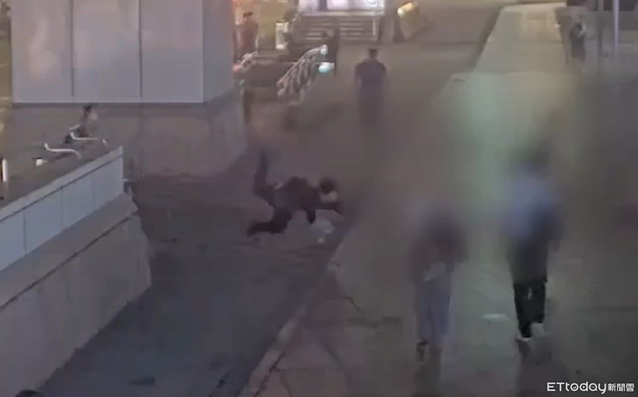 ▲女子手機被砸在地,熱心民眾上前攔下男子不慎跌倒,讓男子趁隙逃逸。(圖/記者邱中岳翻攝)