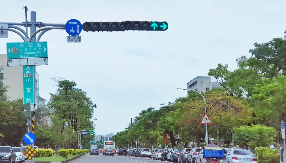 一名網友至《路上觀察學院》分享一張有趣的照片,可以看見在台南市北區小東路與長榮路交叉口,上方的紅綠燈竟高達10個燈號,比一般的號誌桿多出了一倍,讓原PO笑喊「10燈獎,沒懸念」。