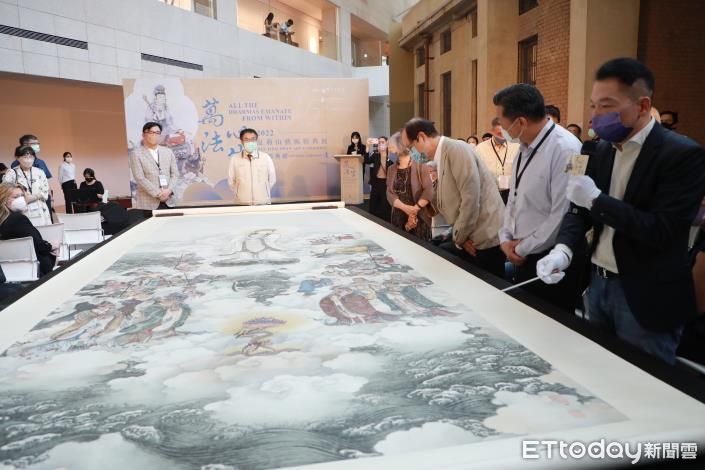 策展人趙忠傑博士談到展場核心為夏荊山86歲所創作〈六龍虛空藏〉,畫面由六龍祥瑞飛天護擁的菩薩,以濟度眾生為樂,能滿足人們祈求福德、智慧、財富、美名、佳偶之心願。最大亮點為首次在臺展出的〈藥師琉璃光如來〉、〈千手千眼觀世音菩薩〉、〈地藏王菩薩〉3件巨幅名畫,最高長達10幾公尺。