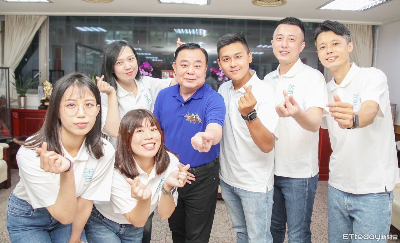 ▲國民黨桃園市長參選人張善政「靚桃園」青見發言團首次行程拜會桃園市議會議長邱奕勝,會後留下愛心合影。(圖/記者沈繼昌翻攝)