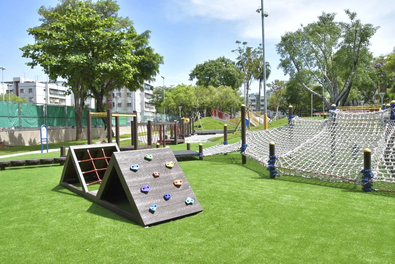 ▲公園內設施須遵守「兒童遊戲場設施安全管理規範」,圖為前鎮區第70期籬仔內公園。(圖/高雄市政府)