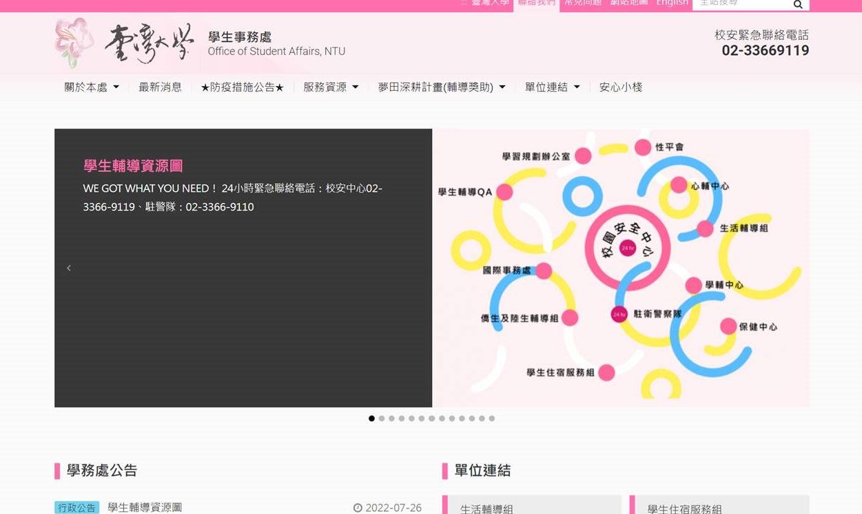 ▲台大學務處網頁竟變截圖。(圖/翻攝官網)