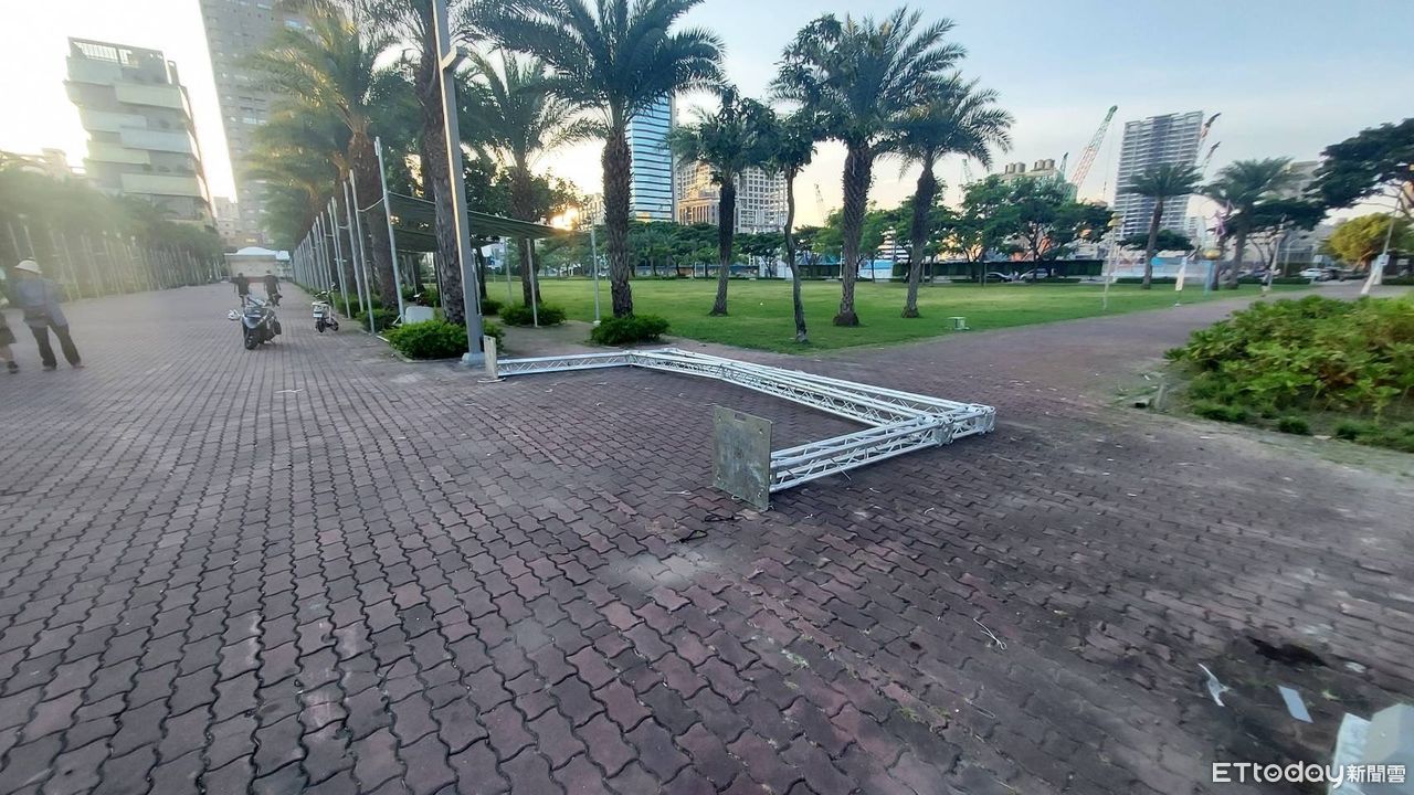 ▲高雄神農市集內一名53歲林男遭鋼架砸傷,送高醫急救,目前在加護病房觀察。(圖/記者吳奕靖翻攝)