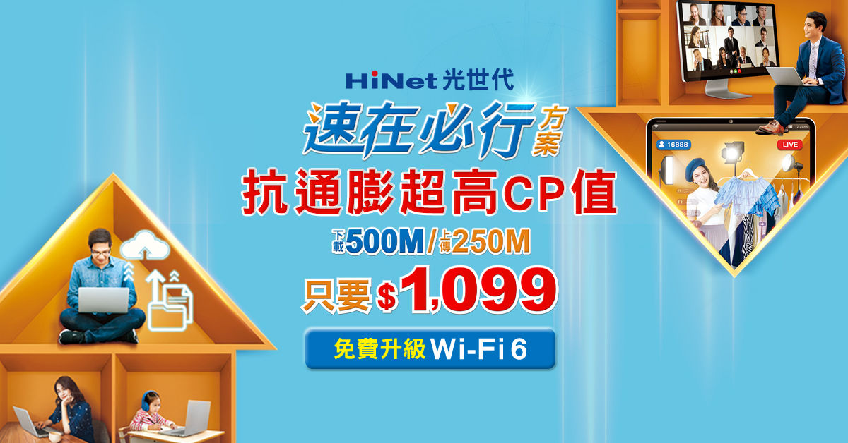 數位時代每個家庭內都有許多3C用品,裝置一台接一台新增,家電也紛紛智慧化,平板、筆電、桌機、智慧電視、智慧家庭裝置、空氣清淨機⋯⋯等,每一樣都需要使用網路連線,更遑論是人手一支起跳的智慧型手機,林林總總算下來一次10幾個裝置要上網,保持網路流暢不lag是比「晚餐吃什麼」還難解的問題。要有強大的網路才能成為全家人的後盾,中華電信邀你無痛升速家用網路,現在申辦HiNet光世代「速在必行」方案,300M只要每月999元,再加100元就能直接升級成500M,最高現省16,800元,打破一般人對於「高速上網=價格昂貴」的印象!