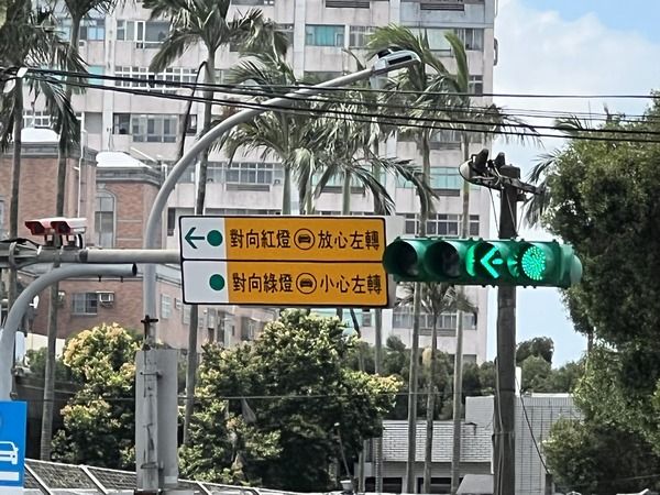 交通局表示,全市左轉車流量大的路口,會優先以劃設專用車道暨設置專用時相做為改善策略;惟部分道路受限於路型及路幅,無法佈設左轉專用車道時,則採共用車道方式,搭配綠燈早開(提早亮啟)或遲閉(延遲熄滅)方式,讓左轉車輛順利通過路口,並配合「道路交通標誌標線號誌設置規則」(以下簡稱「設置規則」)規定,於路口號誌設置圓頭綠燈或左轉箭頭綠燈,供駕駛人依循行止。