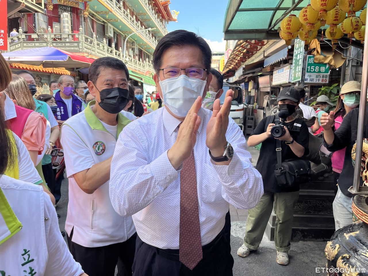 ▲民進黨新北市長參選人林佳龍8日上午參拜蘆洲湧蓮寺。(圖/記者許靖騏攝)
