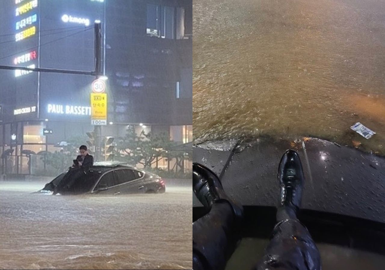 南韓首都圈(首爾、仁川、京畿道)與江原道等中部地方8日降下暴雨,導致多處發生淹水及停電等災情。許多南韓網友把災情照片上傳到推特,其中有一張照片引發眾人關注,原來是有一名西裝男受困在一輛幾乎滅頂的汽車上,許多網友說「他還好嗎」、「天啊,希望你能平安到家」。