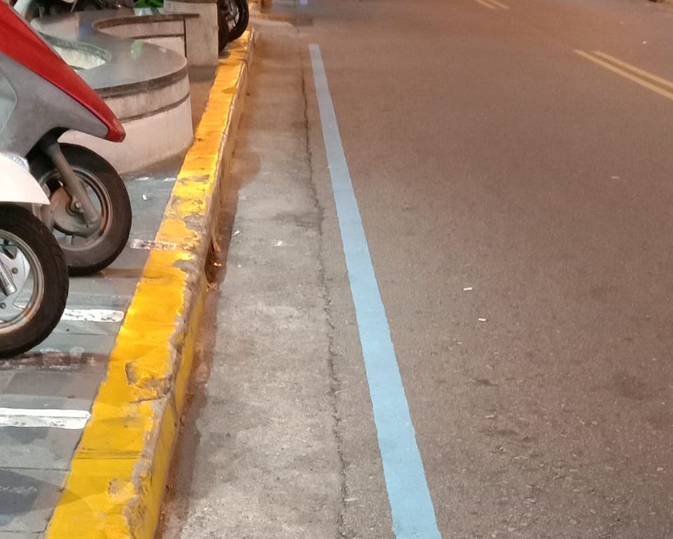 ▲有網友在澎湖路邊發現特殊的藍色標線。(圖/翻攝自Facebook/路上觀察學院,下同)