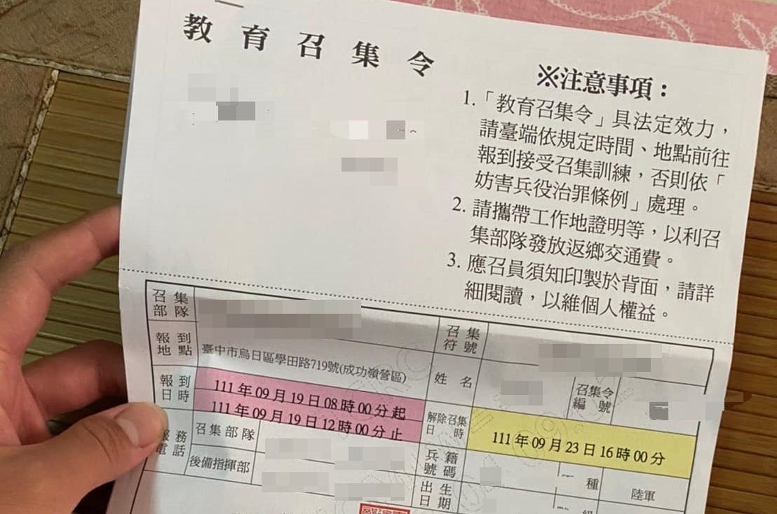▲原PO收到教育召集令。(圖/翻攝自Facebook/爆廢公社)