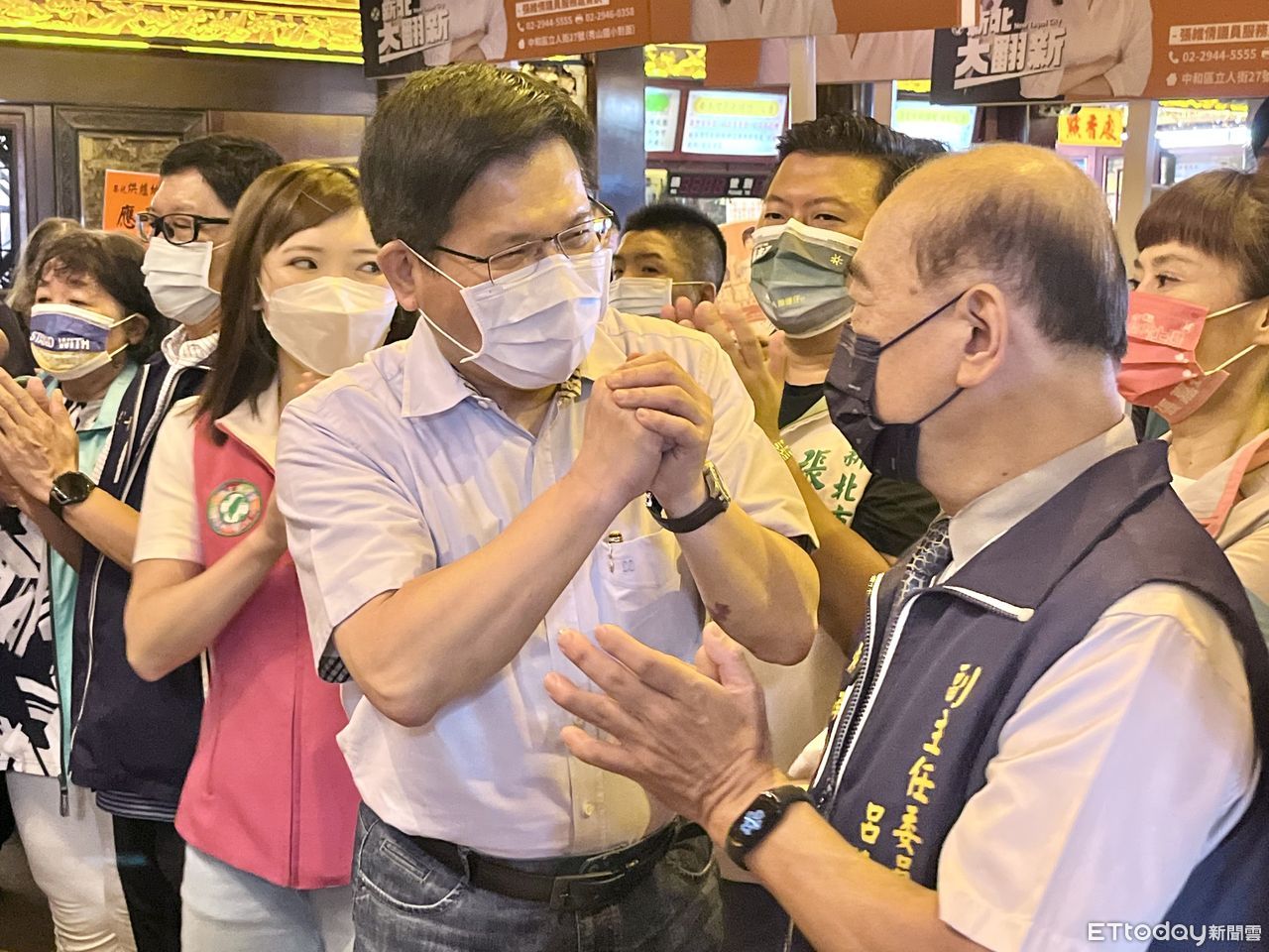 ▲新北市長參選人林佳龍9日參拜中和烘爐地南山福德宮。(圖/記者許靖騏攝)