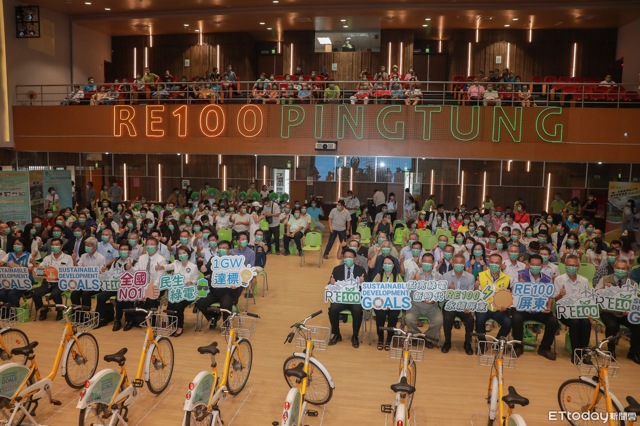 ▲屏東縣政府9日舉行「民生綠電RE100暨邁向永續城市發表會」,宣布屏東縣再生能源併網容量達成1GW目標。(圖/記者周宸亘攝,以下同)