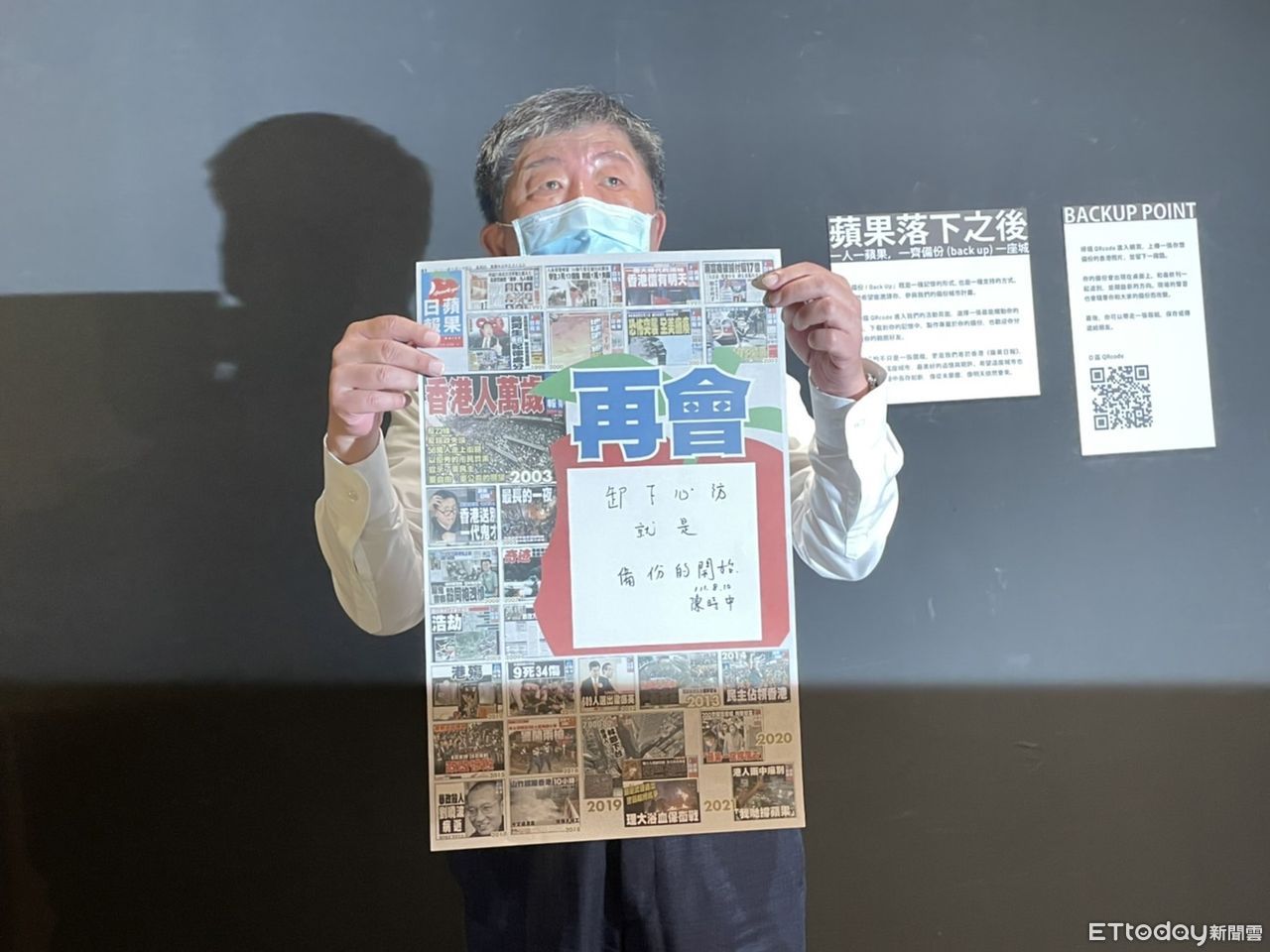陳時中說,香港人當初將主權移交給中國,以為真的會有明天,結果還沒多久,去年反送中跟《國安法》實施,香港不再是香港,「我們在看到備份留下的記憶,但如果當初不要卸下心房,也許今天就不要備份了」。