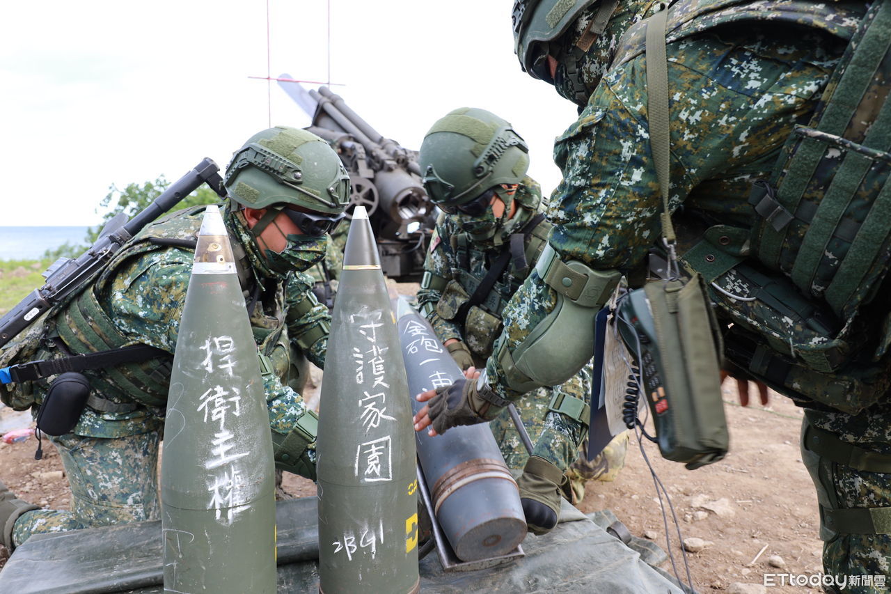 ▲「天雷操演」國軍在砲彈上寫上「捍衛主權、守護家園」。(圖/記者陳崑福翻攝)