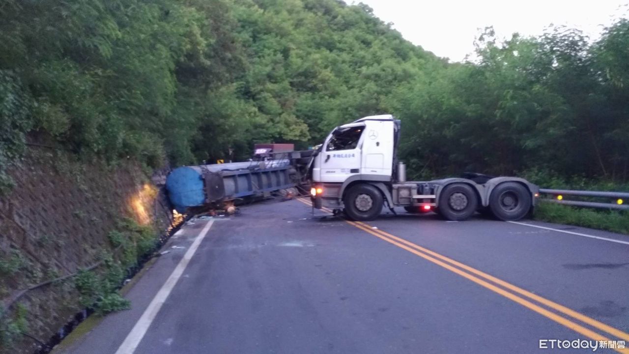 ▲南迴公路聯結車翻覆 。(圖/記者陳崑福翻攝,下同)