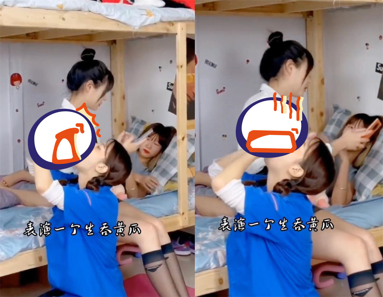 不過,隨後距鏡頭較近的一名身穿藍色短袖的女生,突然拿起一根長度接近她前手臂的黃瓜,以模仿「吞劍」的方式,將整根又粗又大的黃瓜全吞進嘴裡。一旁的另外2名女生直擊,仍淡定聊天。就是這段令人遐想的吃播,瞬間引發網友熱議。