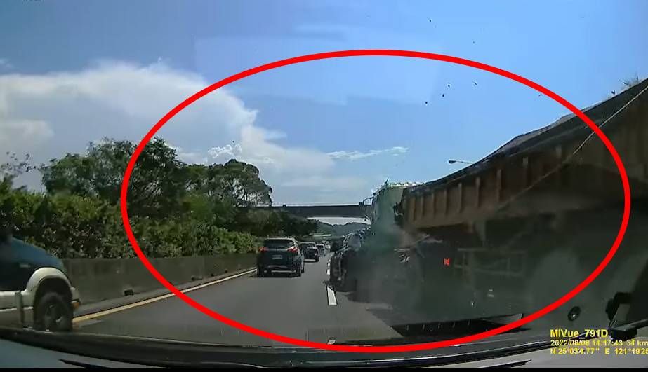 汽車媒體人Andy老爹昨在臉書貼出一段8月8日父親節當天,高速公路行車記錄器事故畫面,一輛休旅車突然急減速,駕駛人視角疑看到「後方砂石車怪怪」,跟著減速完成後,巧妙地急左閃到內側車道,結果下秒鐘一輛砂石車從他原車道正後方高速前衝,把休旅車後半截撞得稀巴爛,共波及6車,驚險瞬間嚇壞網友。